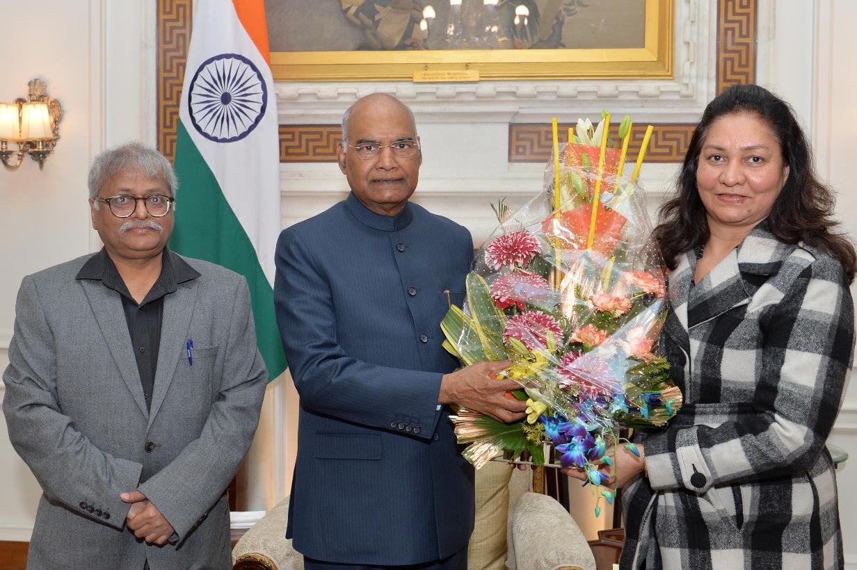 Ms. Shaila Patange Samant with others meeting with the President of India, Shri Ram Nath Kovind, at Rashtrapati Bhavan on February 07, 2020.