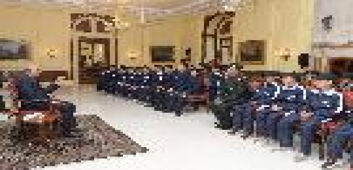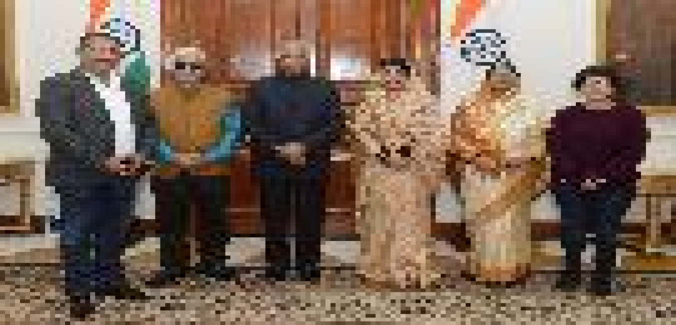 Students and teachers from Karbi Anglong district of Assam attending National Integration Tour, organized by 3 SIKH /HQ 4 Corps of Eastern Command meeting with the President of India, Shri Ram Nath Kovind, at Rashtrapati Bhavan on December 16, 2019.