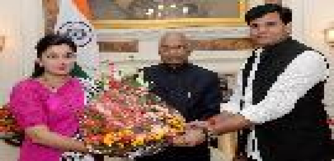 Smt. Navneet Ravi Rana, MP (Lok Sabha) along with her husband Shri Ravi Rana, MLA meeting with the President of India, Shri Ram Nath Kovind, at Rashtrapati Bhavan on December 05, 2019.