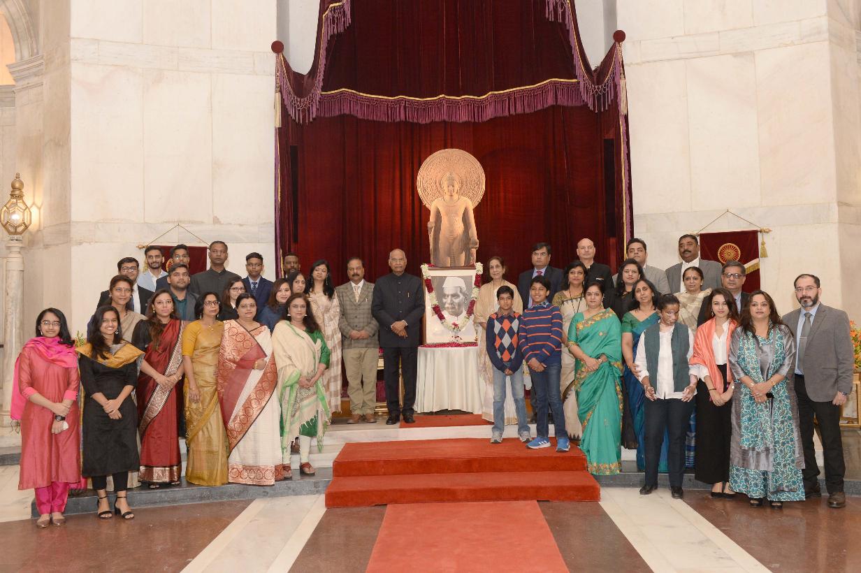 The President of India, Shri Ram Nath Kovind paying floral tributes to the former President of India, Dr. Rajendra Prasad on his birth anniversary, at Rashtrapati Bhavan on December 03, 2019.