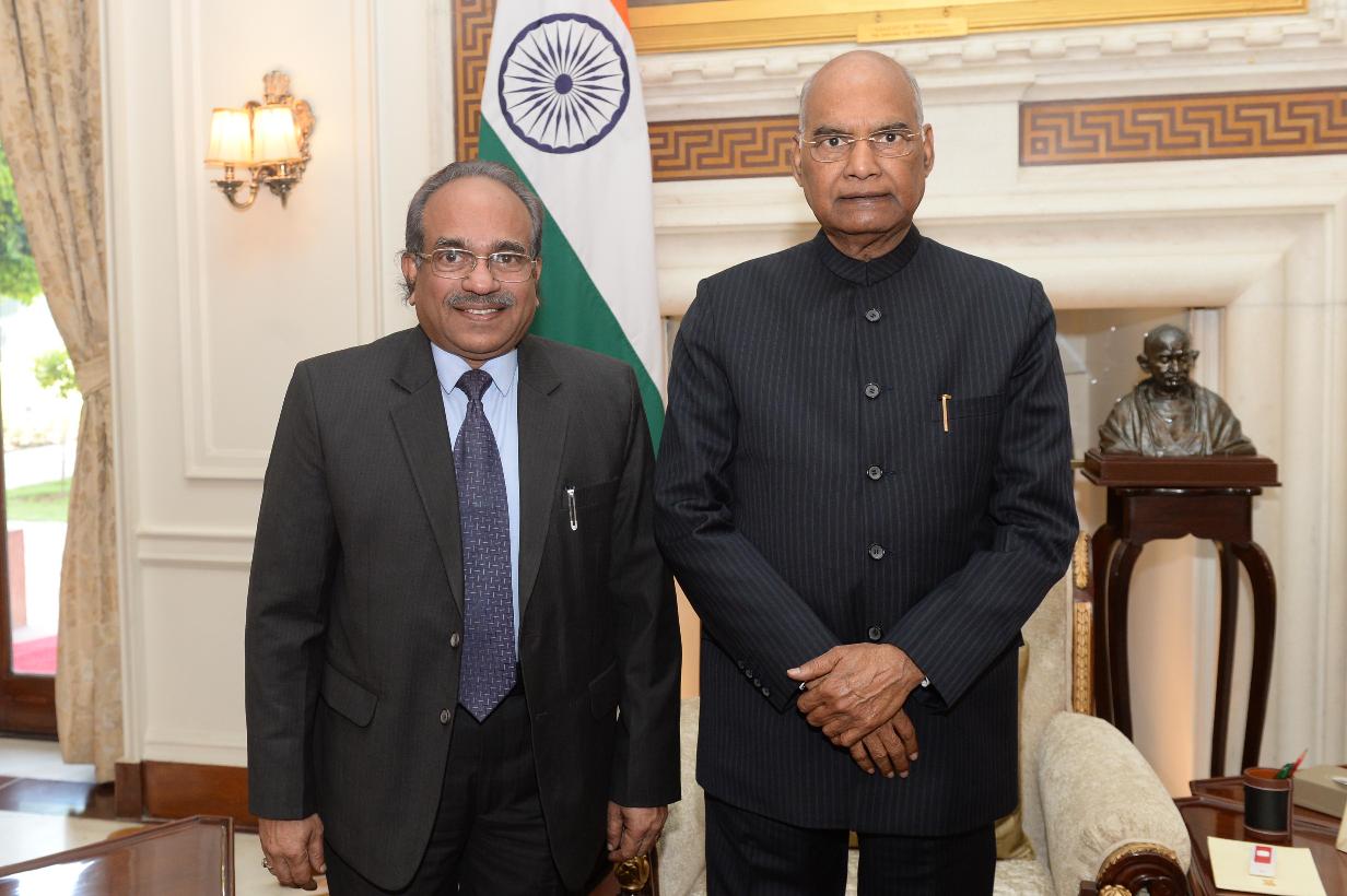 The Election Commissioner for Union Territories, Shri Narendra Kumar meeting with the President of India, Shri Ram Nath Kovind, at Rashtrapati Bhavan on December 03, 2019.