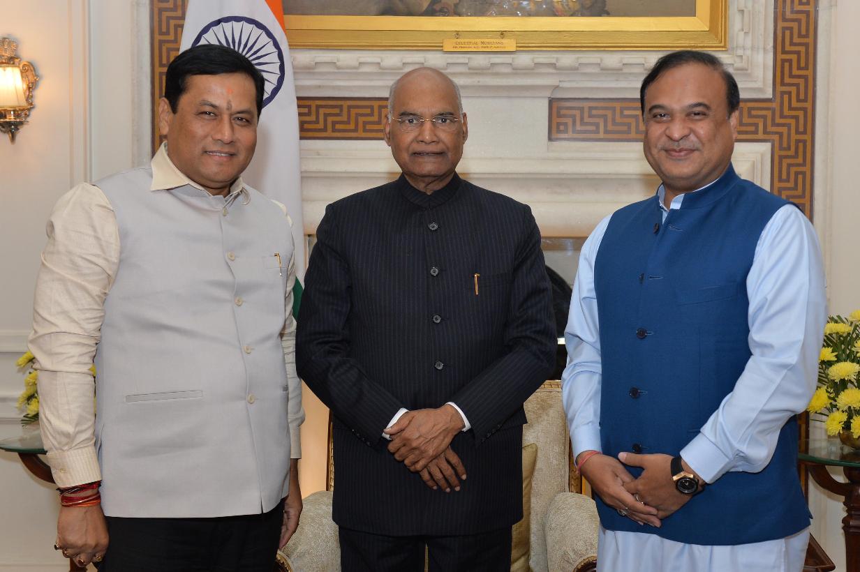 The Chief Minister of Assam, Shri Sarbananda Sonowal along with the Finance Minister of Assam, Dr. Himanta Biswa Sarma meeting with the President of India, Shri Ram Nath Kovind, at Rashtrapati Bhavan on December 03, 2019.