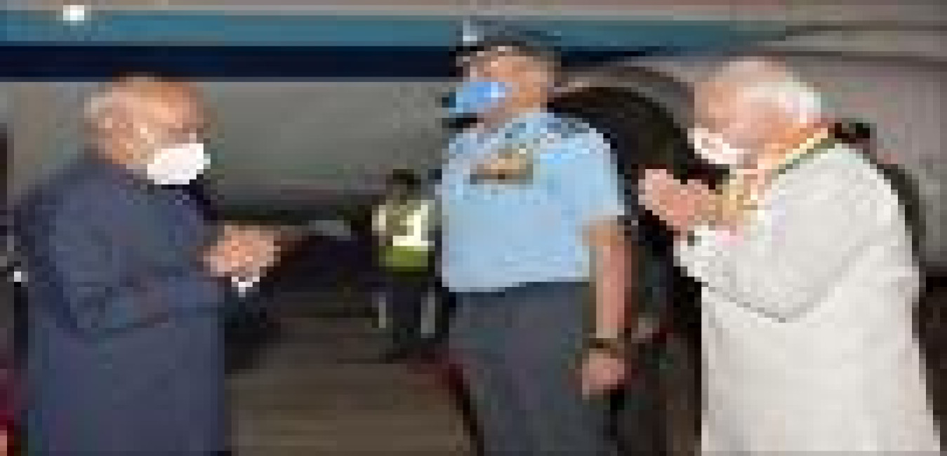 The President of India, Shri Ram Nath Kovind arrives in Kingstown, the capital city of Saint Vincent and the Grenadines on May 18, 2022. The Governor General of Saint Vincent and the Grenadines, H.E. Ms. Dame Susan Dougan, the Prime Minister, Dr. the Hon. Ralph E. Gonsalves and other dignitaries received the President at the airport.