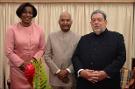 The President of India, Shri Ram Nath Kovind meeting the Governor General of Saint Vincent and the Grenadines, H.E. Ms. Dame Susan Dougan and the Prime Minister, Dr. the Hon. Ralph E. Gonsalves, in Kingstown, Saint Vincent and the Grenadines on May 19, 2022.