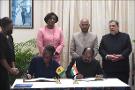 The President of India, Shri Ram Nath Kovind, the Governor General of Saint Vincent and the Grenadines, H.E. Ms. Dame Susan Dougan and the Prime Minister, Dr. the Hon. Ralph E. Gonsalves, witnessing the signing of MoUs on Exchange of Information and Assistance in Collection of Taxes and on Refurbishment of Old Carter Community Centre , in Kingstown, Saint Vincent and the Grenadines on May 19, 2022.