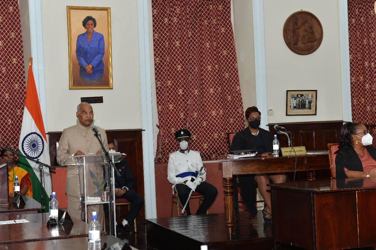 The President of India, Shri Ram Nath Kovind addressed the House Assembly of Saint Vincent and the Grenadines on the topic "India and SVG - Towards an Inclusive World Order", in Kingstown, Saint Vincent and the Grenadines on May 19, 2022.
