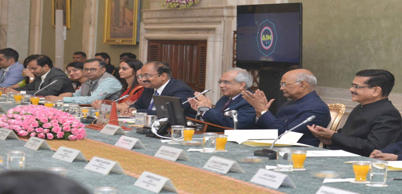 The President of India, Shri Ram Nath Kovind witnessing the Exhibits and interacting with some of the most promising student innovators of Atal Tinkering Lab, at Rashtrapati Bhavan on November 14, 2019.