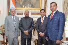 Shri Bimal Gupta along with his wife Smt. Mira Gupta meeting with the President of India, Shri Ram Nath Kovind and the First Lady Smt. Savita Kovind, at Rashtrapati Bhavan on November 13, 2019.