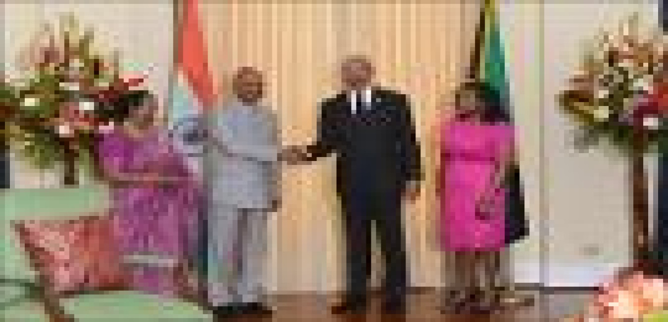 The President of India, Shri Ram Nath Kovind and the Prime Minister of Jamaica, H.E. Andrew Holness witnessing the signing of one MoU on cooperation between Sushma Swaraj Institute of Foreign Service (SSIFS) and Ministry of Foreign Affairs and Foreign Trade of Jamaica, at Kingston, in Jamaica on May 16, 2022.
