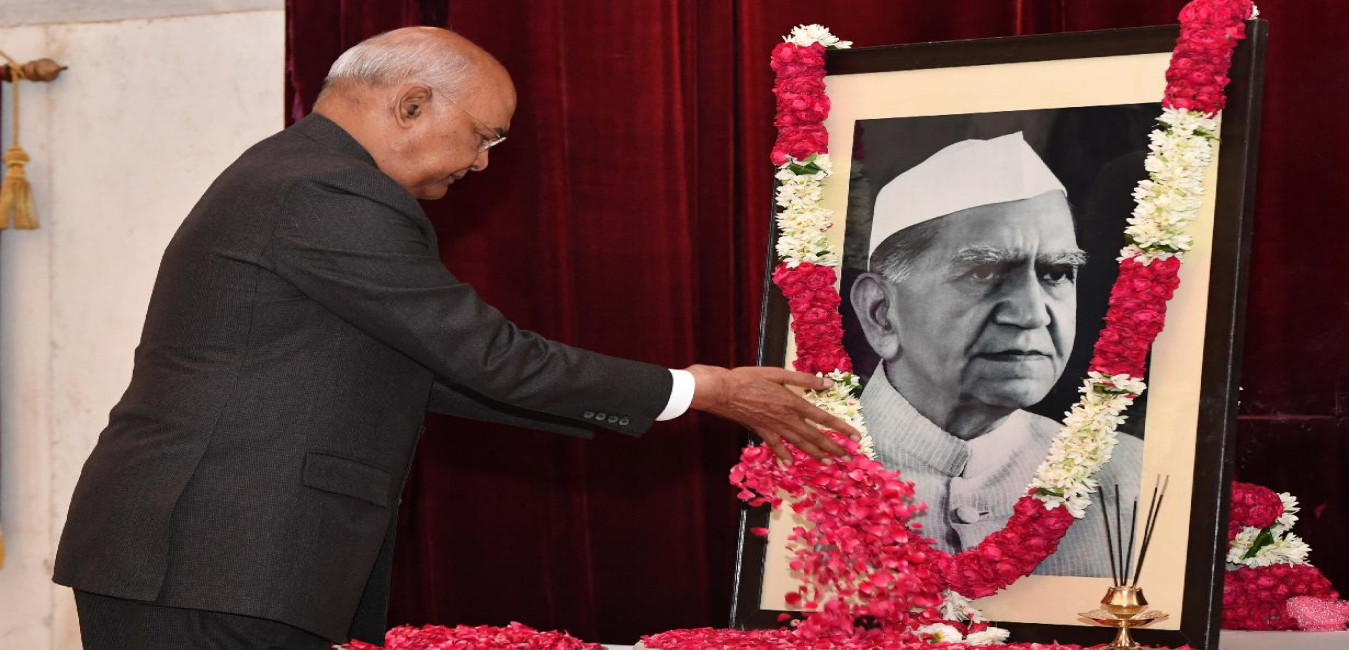The President of India, Shri Ram Nath Kovind paying floral tributes to Shri Fakhruddin Ali Ahmed, former President of India, on his birth anniversary, at Rashtrapati Bhavan on May 13, 2022.