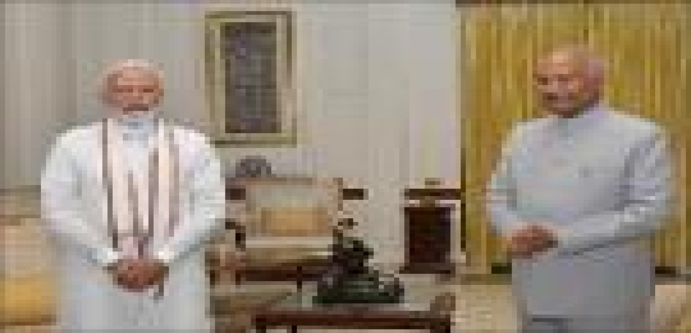 The Prime Minister of India, Shri Narendra Modi calling on the President of India, Shri Ram Nath Kovind, at Rashtrapati Bhavan on May 10, 2022.