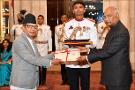 The Ambassador of Nepal, H.E. Dr. Shankar Prasad Sharma presenting his credentials to the President of India, Shri Ram Nath Kovind, at Rashtrapati Bhavan on May 11, 2022.