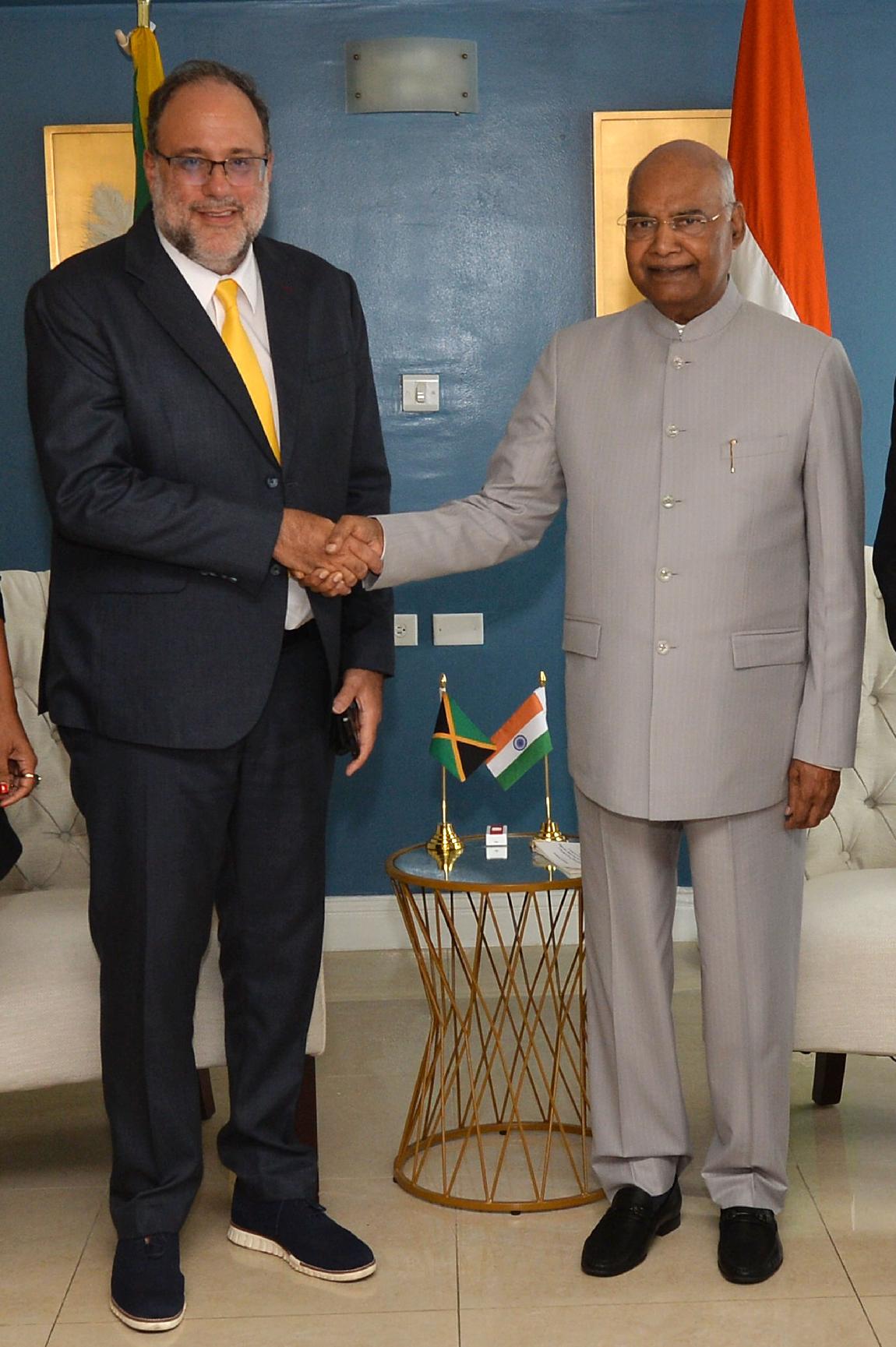 The Leader of Opposition of Jamaica, Mr. Mark Golding calling on the President of India, Shri Ram Nath Kovind, at Kingston, in Jamaica on May 16, 2022.
