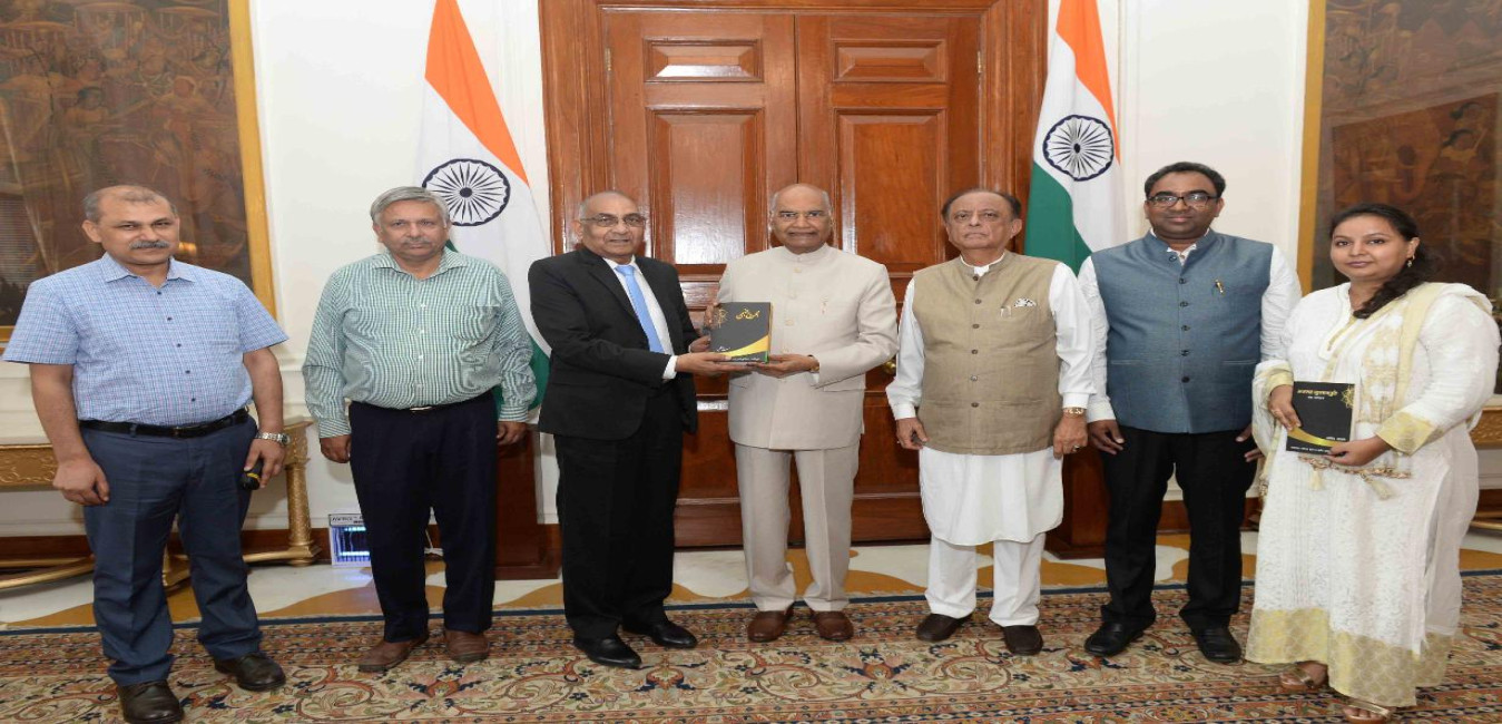 Shri Ashish Kumar Singh with others meeting with the President of India, Shri Ram Nath Kovind, at Rashtrapati Bhavan on August 08, 2019.