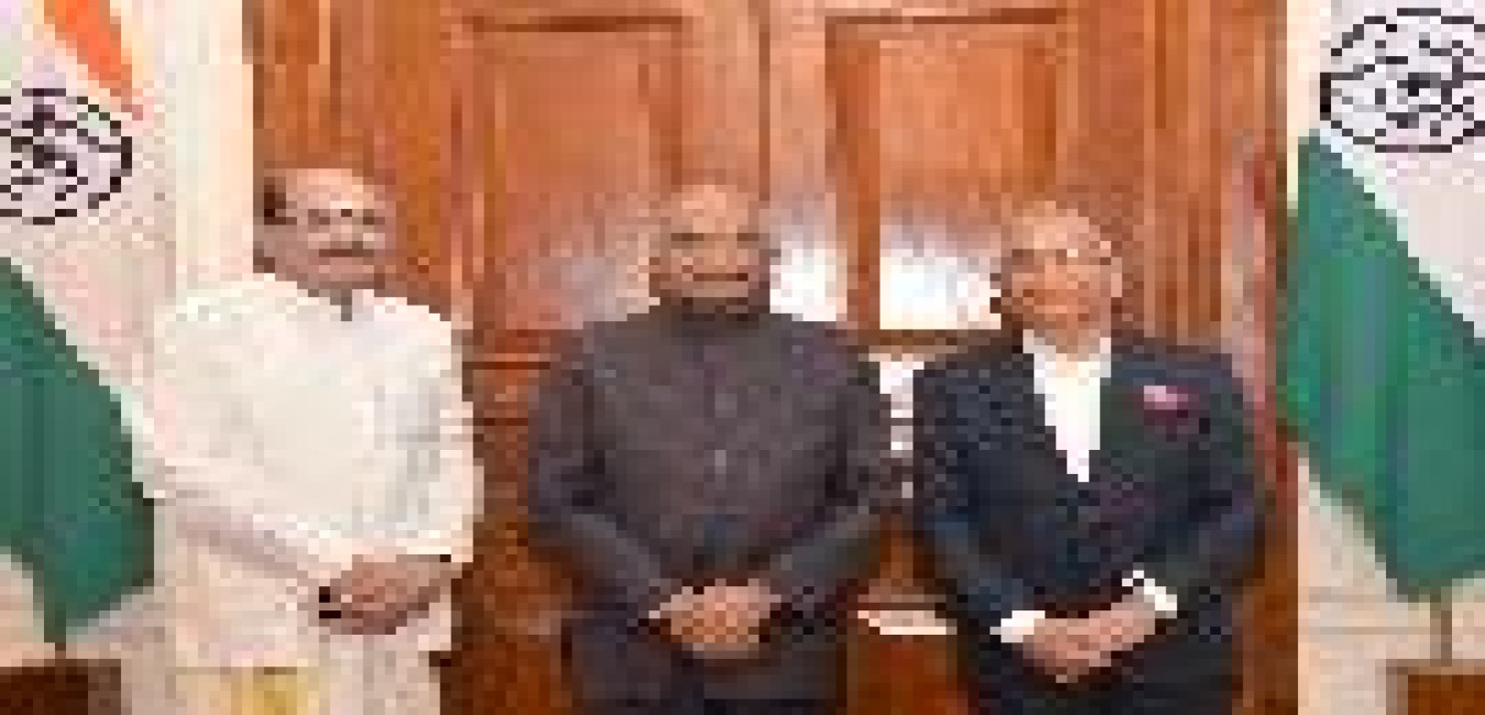 Shri Vijay Guru Jee and Shri PNC Menon meeting with the President of India, Shri Ram Nath Kovind, at Rashtrapati Bhavan on June 21, 2019.