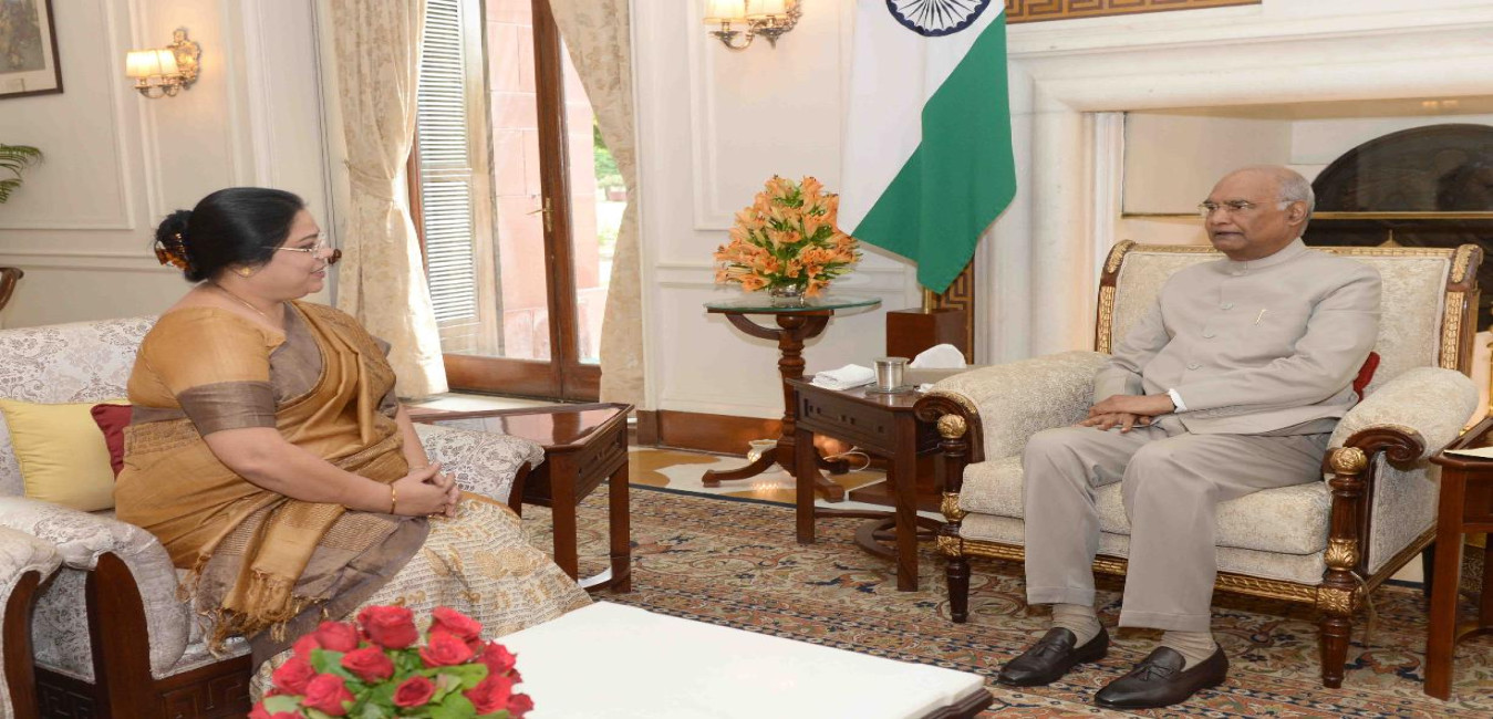 The Minister of State for Women and Child Development, Ms. Debasree Chaudhuri meeting with the President of India, Shri Ram Nath Kovind, at Rashtrapati Bhavan on June 24, 2019.