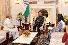 The Minister for Social Justice and Empowerment, Shri Thaawar Chand Gelhot along with the Secretary, Department of Empowerment of Persons with Disabilities, Ms. Shakuntala D. Gamlin meeting with the President of India, Shri Ram Nath Kovind, at Rashtrapati Bhavan on June 20, 2019.