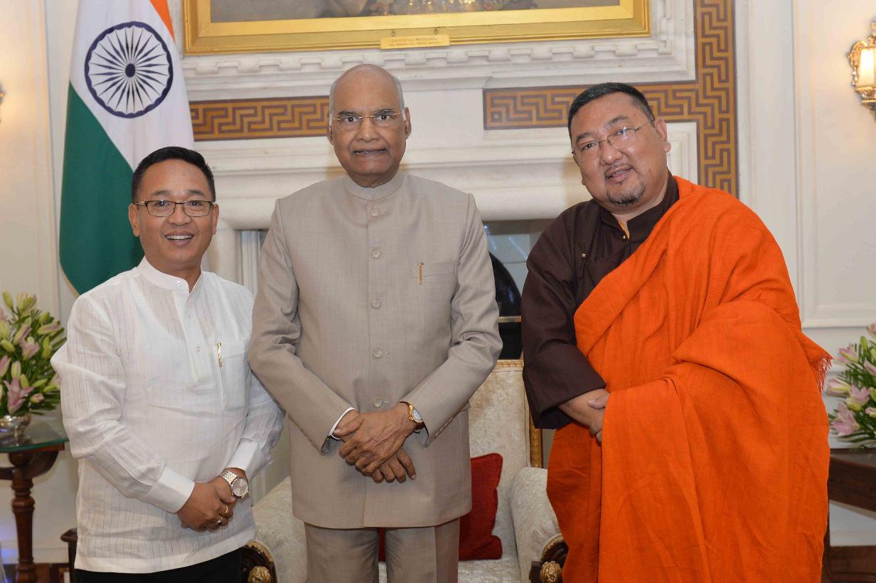 The Chief Minister of Sikkim, Shri Prem Singh Tamang along with the Minister of Rural Management and Development Department, Government of Sikkim, Shri Sonam Lama meeting with the President of India, Shri Ram Nath Kovind, at Rashtrapati Bhavan on June 13, 2019.