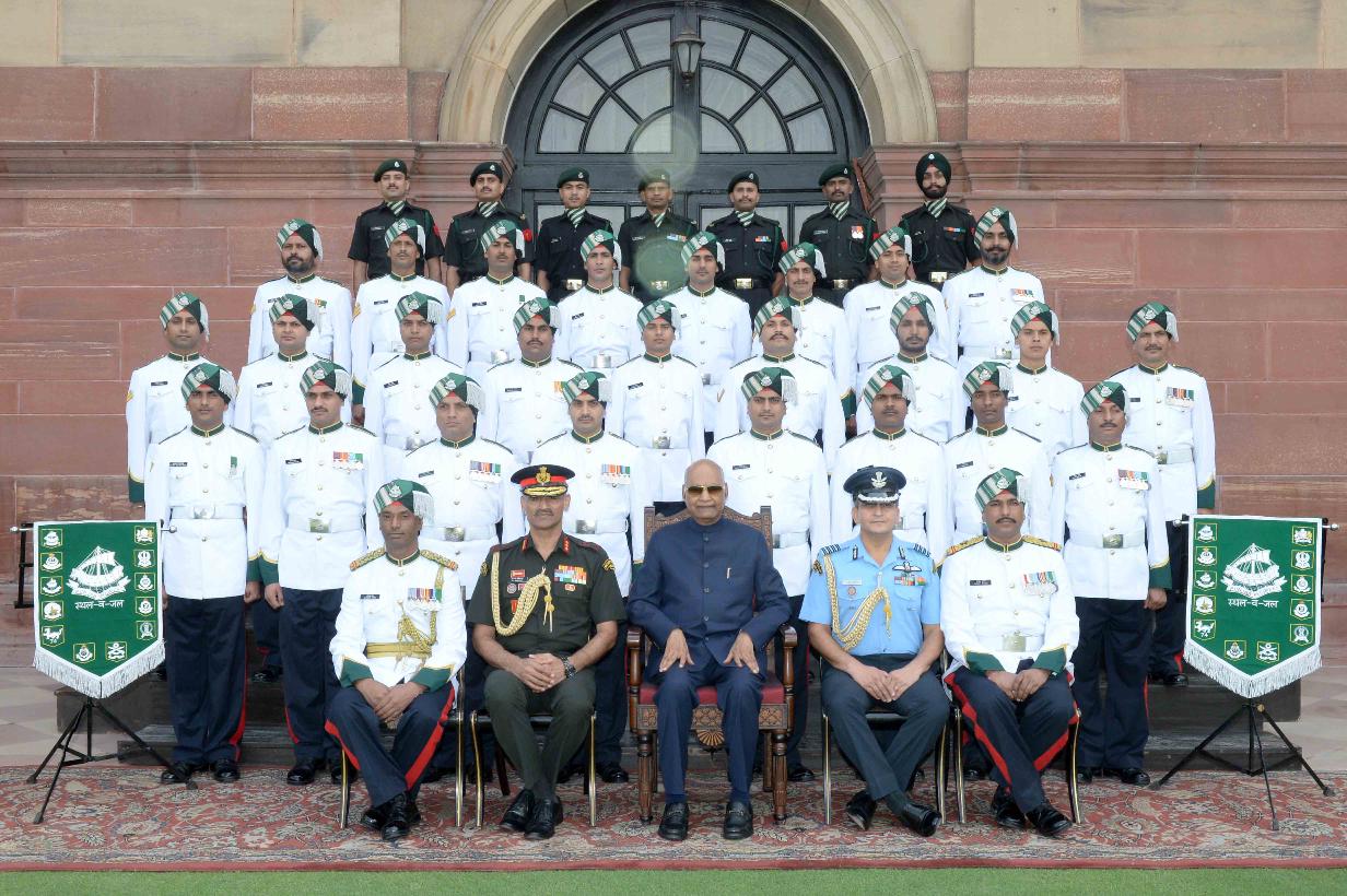 The President of India, Shri Ram Nath Kovind with Military Band of the Punjab Regimental Centre, at Rashtrapati Bhavan on June 18, 2019.