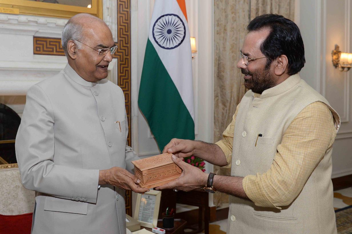 The Minister of Minority Affairs, Shri Mukhtar Addas Naqvi meeting with the President of India, Shri Ram Nath Kovind, at Rashtrapati Bhavan on June 11, 2019.