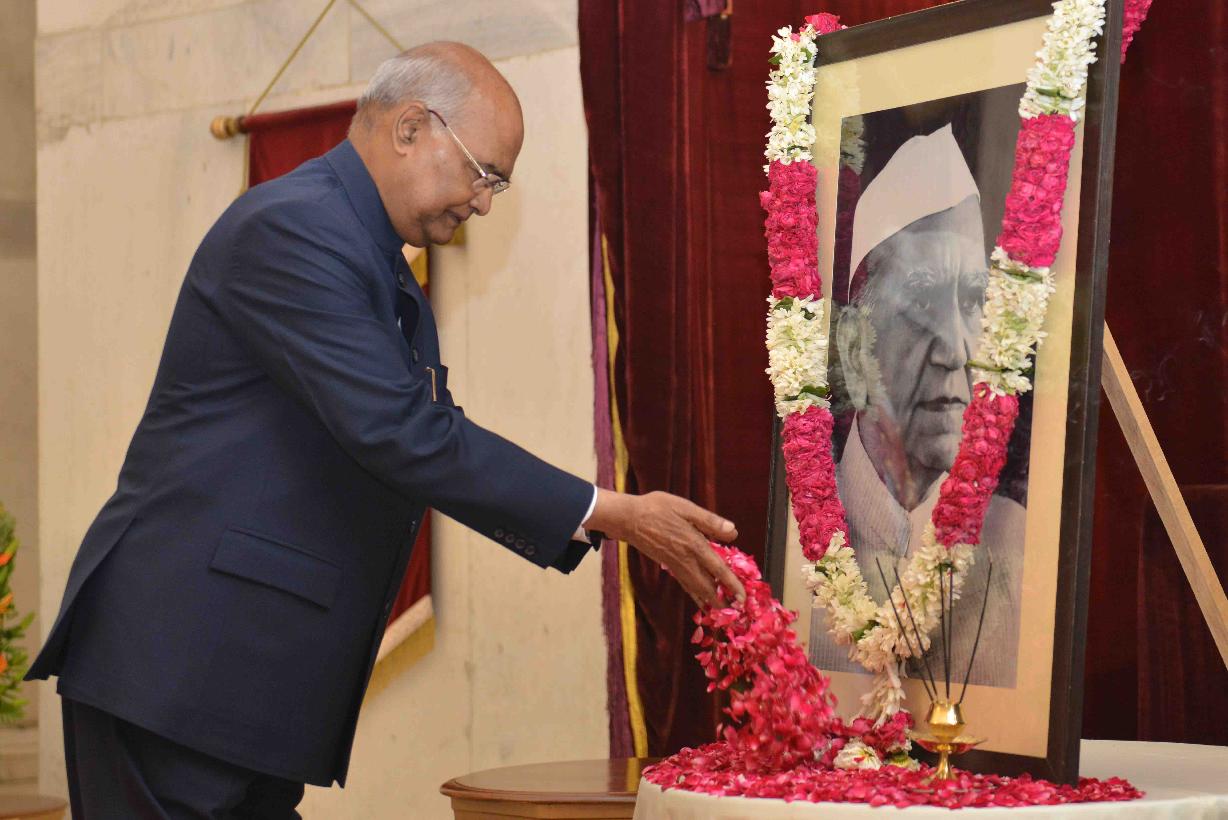 The President of India, Shri Ram Nath Kovind paying floral tributes to Shri Neelam Sanjiva Reddy, former President of India, on his birth anniversary, at Rashtrapati Bhavan on May 19, 2019.