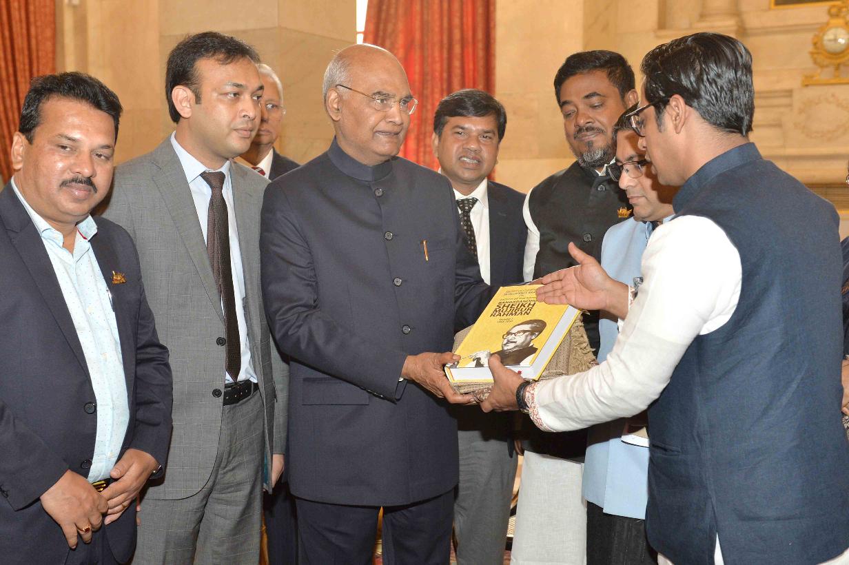 Shri Satish Chandra Dubey, MP (Lok Sabha), West Champaran with others meeting with the President of India, Shri Ram Nath Kovind, at Rashtrapati Bhavan on March 12, 2019.