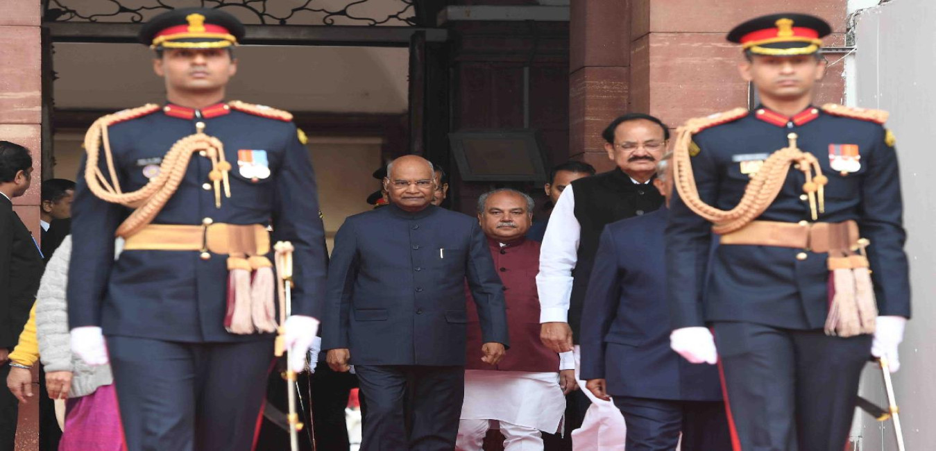 The President of India, Shri Ram Nath Kovind in a Ceremonial Procession towards the Central Hall of Parliament to address the Joint Sitting of Two Houses of Parliament, in New Delhi on January 31, 2019.