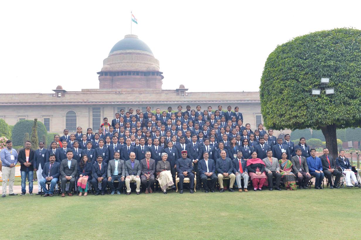 The President of India, Shri Ram Nath Kovind presenting the Pradhan Mantri Rashtriya Bal Puraskar-2019, at Rashtrapati Bhavan on January 22, 2019.