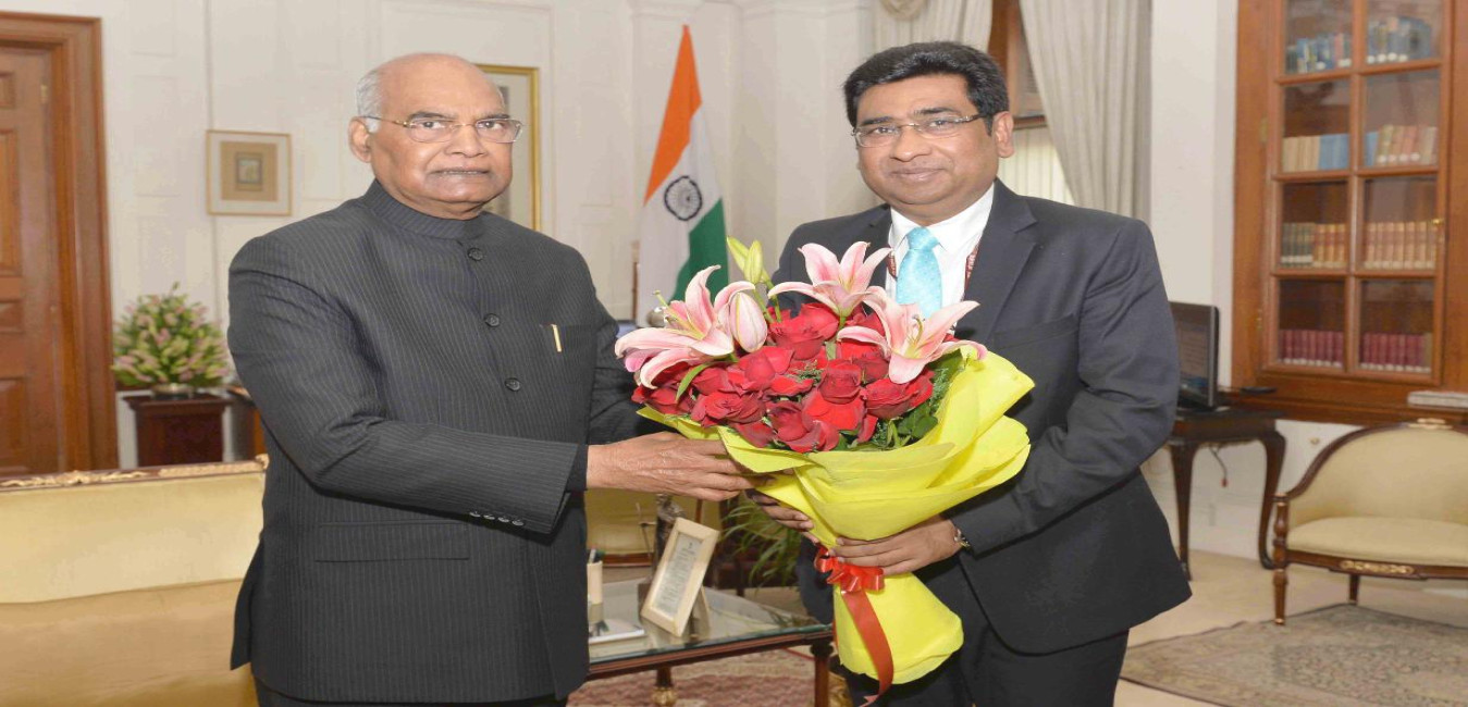 Shri Om Prakash Sharma, MLA, Delhi alongwith Shri Rajat Kumar meeting with the President of India, Shri Ram Nath Kovind, at Rashtrapati Bhavan on January 15, 2019.