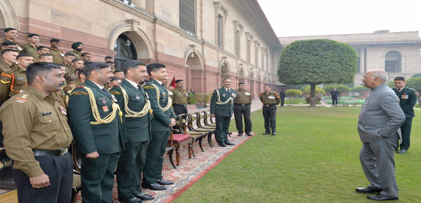 The President of India, Shri Ram Nath Kovind with the Army Officers attached with the Rashtrapati Bhavan on the occasian of Army Day, at Rashtrapati Bhavan on January 15, 2019.
