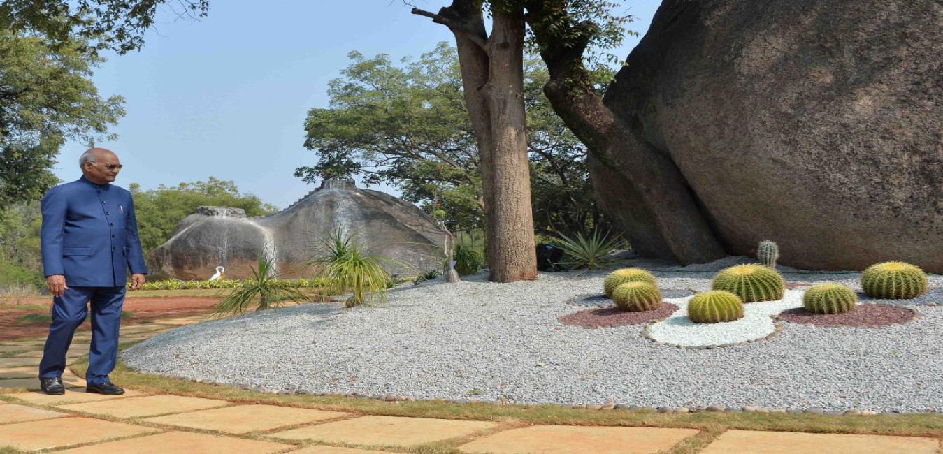 The President of India, Shri Ram Nath Kovind inaugurating the Palmatum Rock Garden and Water Cascade near Herbal Garden, at Rashtrapati Nilayam, Bolarum, in Secunderabad on December 24, 2018.