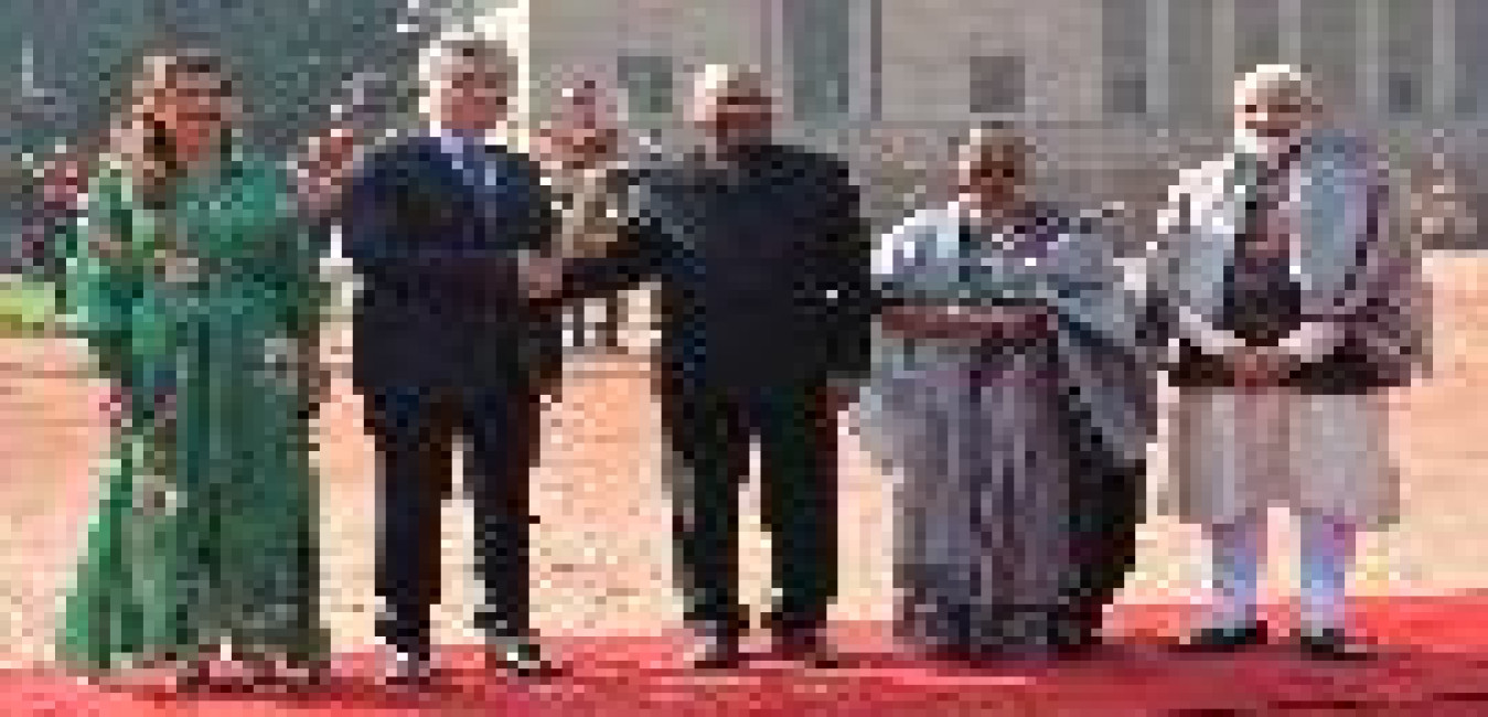 The President of India, Shri Ram Nath Kovind accords a ceremonial welcome to the President of the Argentine Republic, H.E. Mr. Mauricio Macri, at Rashtrapati Bhavan on February 18, 2019.