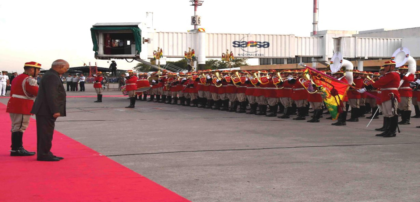 The President of India, Shri Ram Nath Kovind accorded a Ceremonial Welcome by the President of Bolivia, H.E. Mr. Evo Morales, on his arrival, at Viru Viru International Airport, Santa Cruz de la Sierra, in Bolivia on March 28, 2019.
