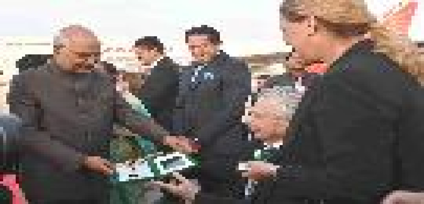The President of India, Shri Ram Nath Kovind receiving the "Key of the City of Santa Cruz", at Viru Viru International Airport, Santa Cruz de la Sierra, in Bolivia on March 28, 2019.