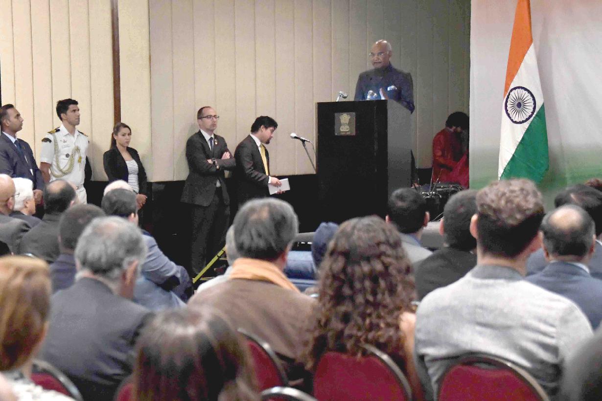 The President of India, Shri Ram Nath Kovind addressing the Indian Community at a Reception, at Santiago, in the Republic of Chile on March 30, 2019.