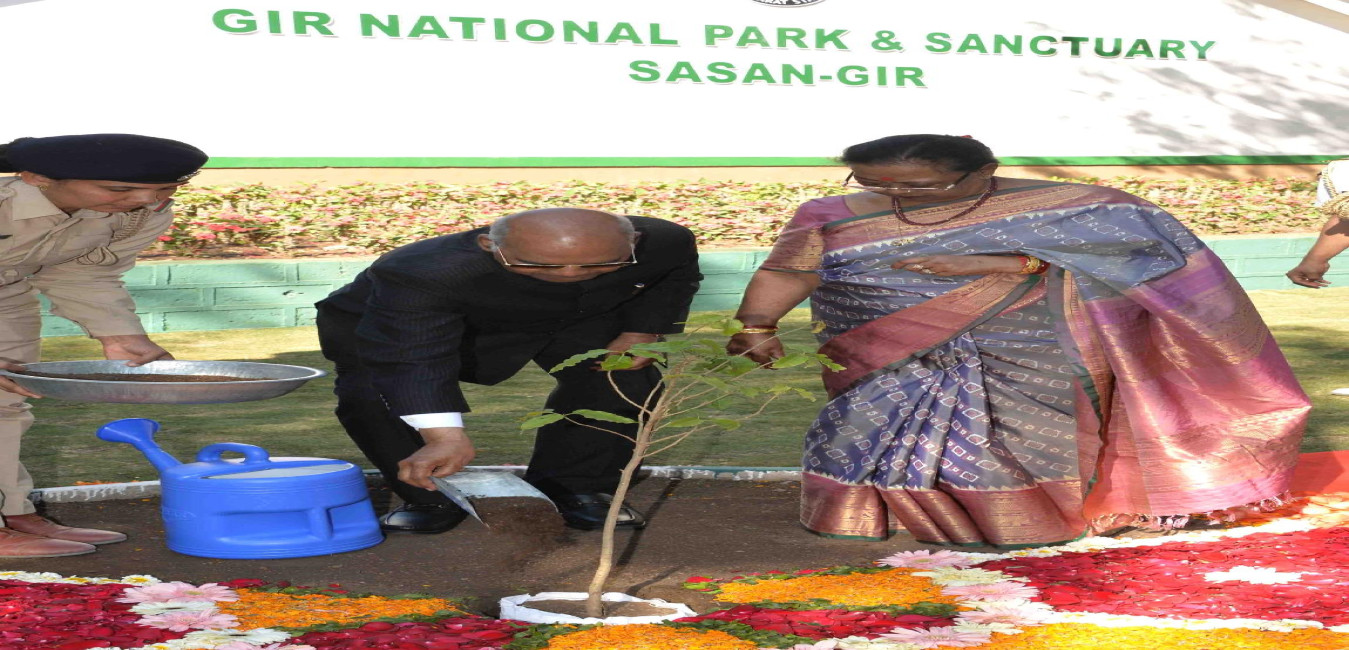 The President of India, Shri Ram Nath Kovind planting a tree at Gir National Park, Sasan Gir, in Gujarat on December 31, 2018.
