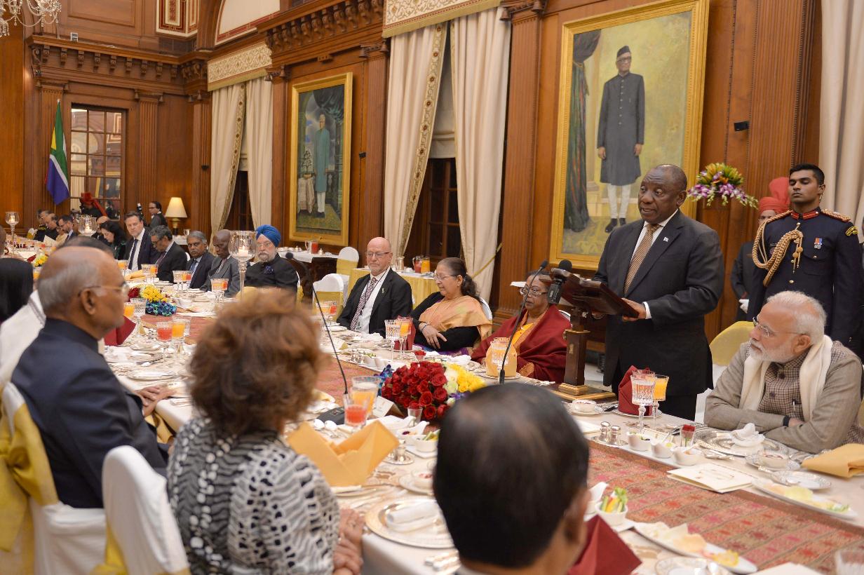 The President of India, Shri Ram Nath Kovind hosting Banquet in honour of the President of the Republic of South Africa, H.E. Mr. Matamela Cyril Ramaphosa, at Rashtrapati Bhavan on January 25, 2019.