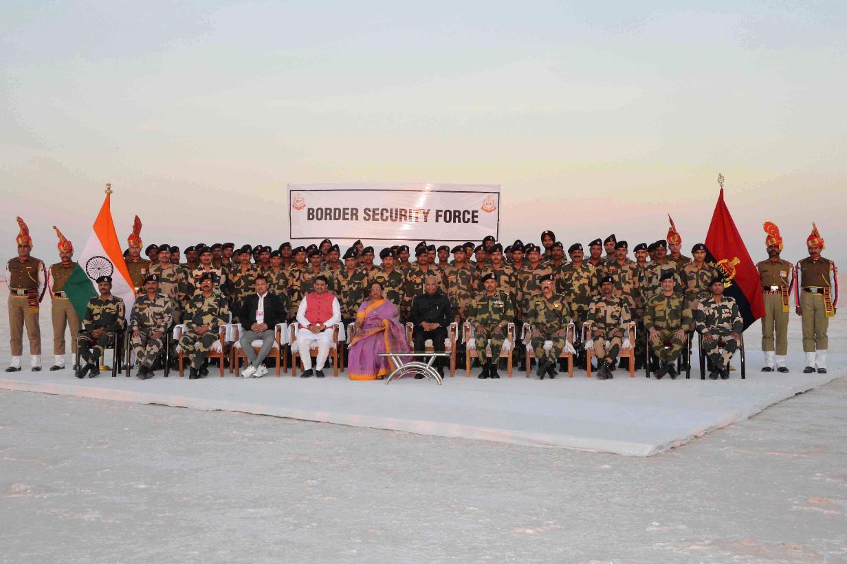 The President of India, Shri Ram Nath Kovind meeting with BSF jawans at Rann of Kutch, in Gujarat on December 29, 2018.