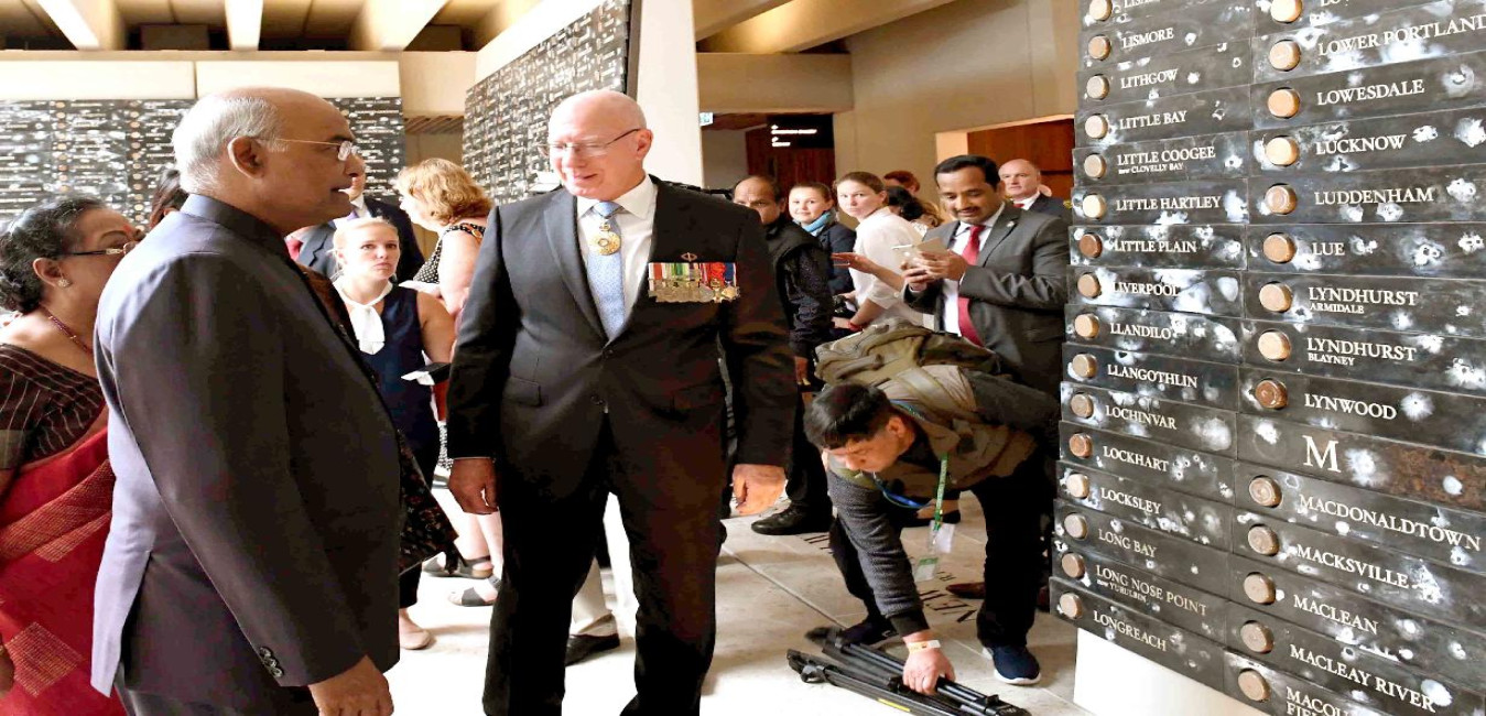 The President of India, Shri Ram Nath Kovind laying wreath at the Anzac War Memorial and visiting the Museum, at Hyde Park, in Sydney on November 21, 2018.