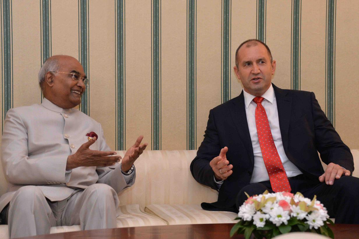 The President of India, Shri Ram Nath Kovind meeting with the President of Bulgaria, H.E. Mr. Rumen Radev, at the Administration of the President Building, in Sofia, Bulgaria on September 05, 2018.