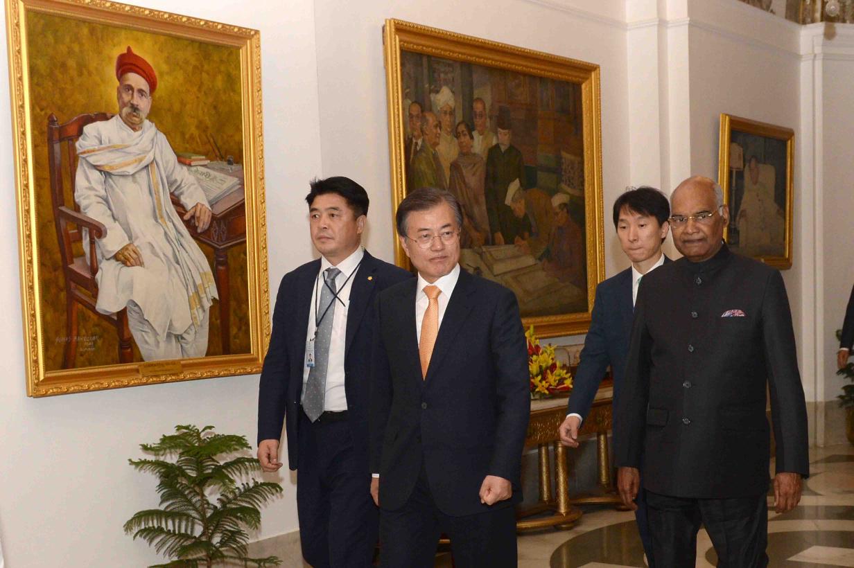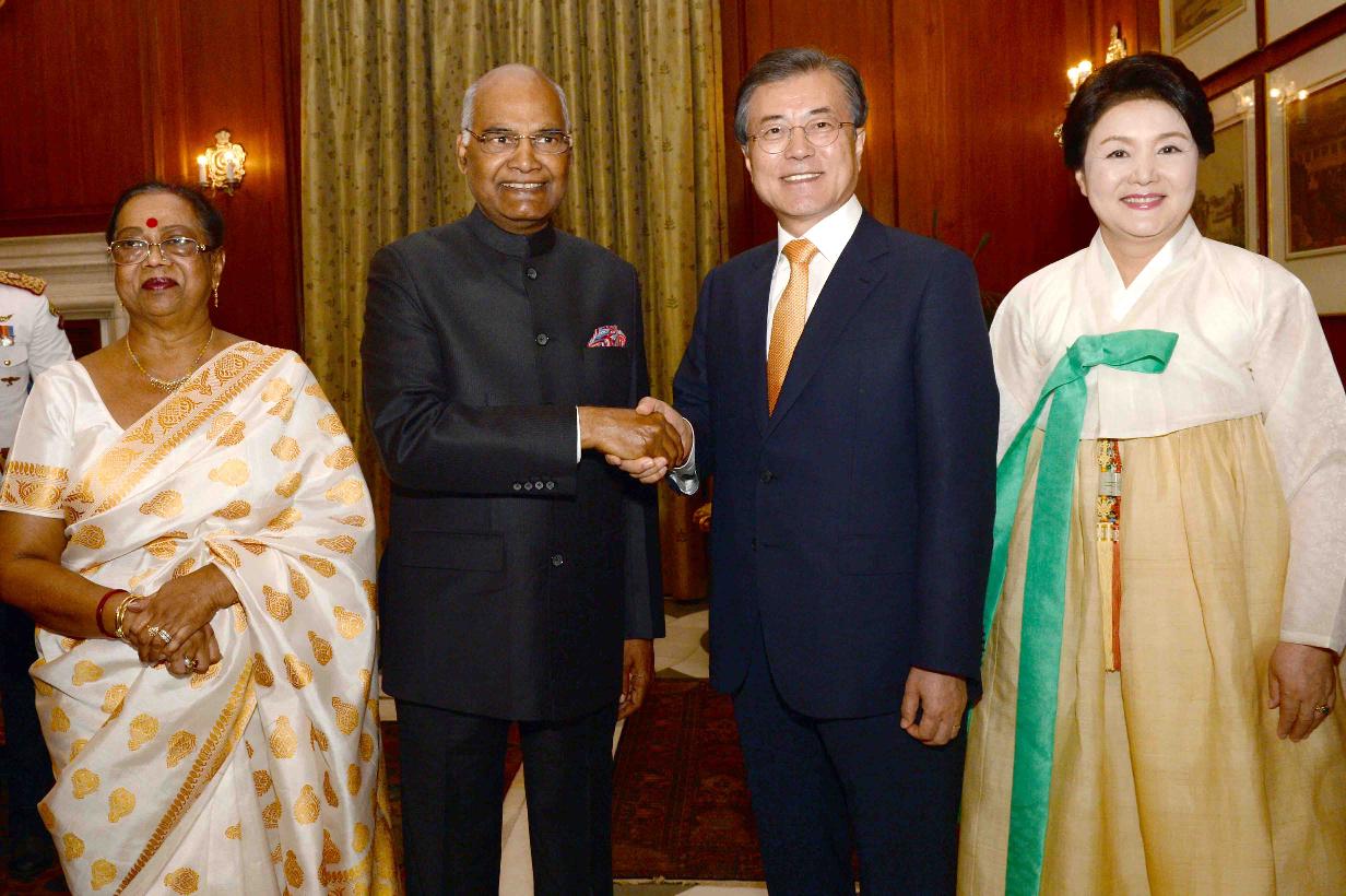 The President of the Republic of Korea, H.E. Mr. Moon Jae-in calling on the President of India, Shri Ram Nath Kovind, at Rashtrapati Bhavan on July 10, 2018.