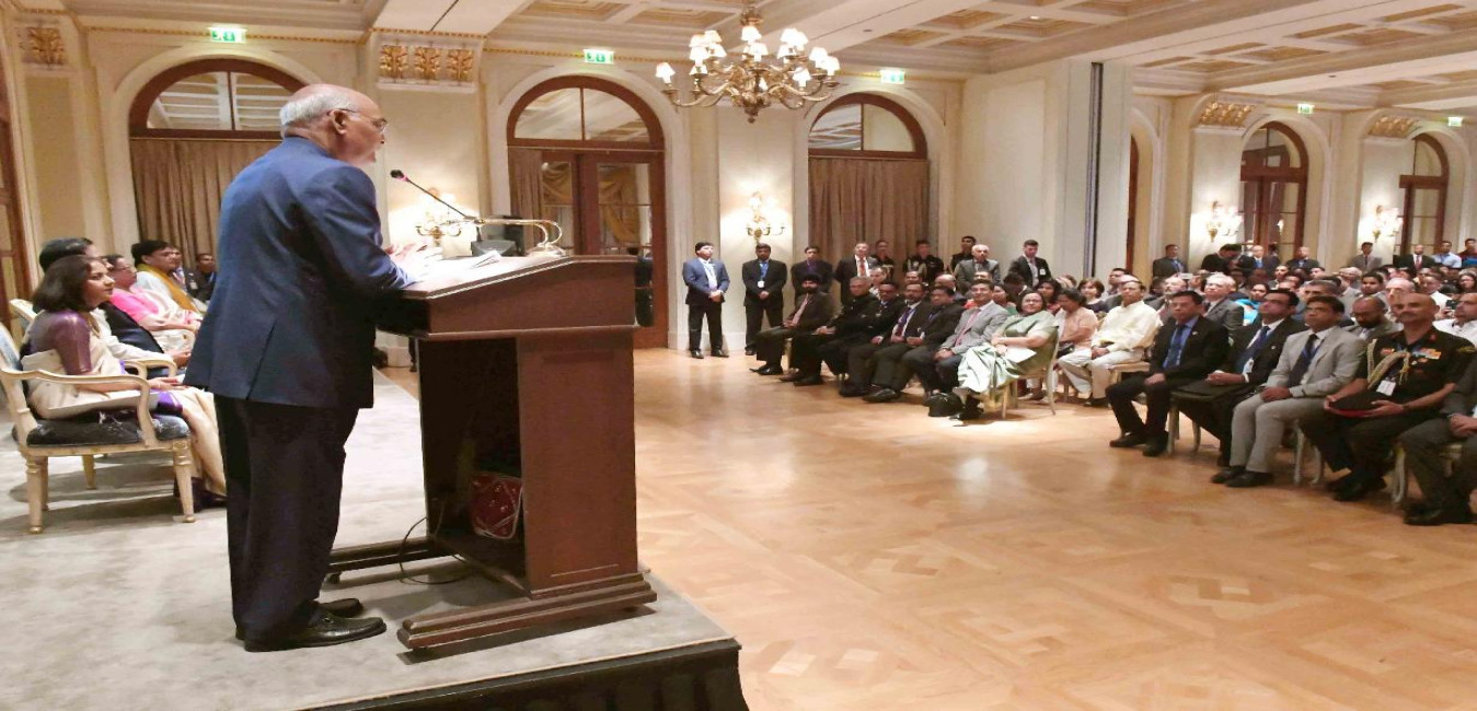 The President of India, Shri Ram Nath Kovind addressing at the Indian Community Reception hosted by the Ambassador of India to Greece, Ms. Samma Jain, at Athens, in Greece on June 17, 2018.