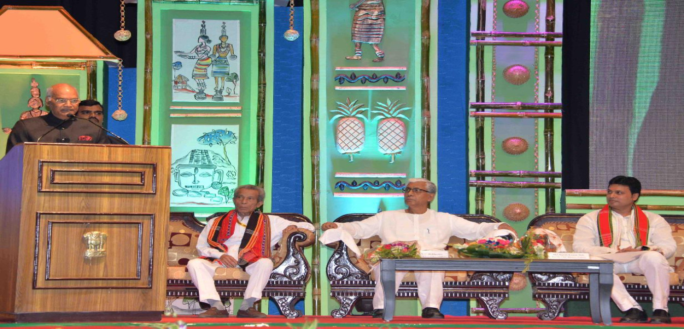 The President of India, Shri Ram Nath Kovind attending the civic reception hosted for him by the state government of Tripura and declaring the "Queen Pineapple" as the state fruit of Tripura, in Agartala on June 07, 2018.