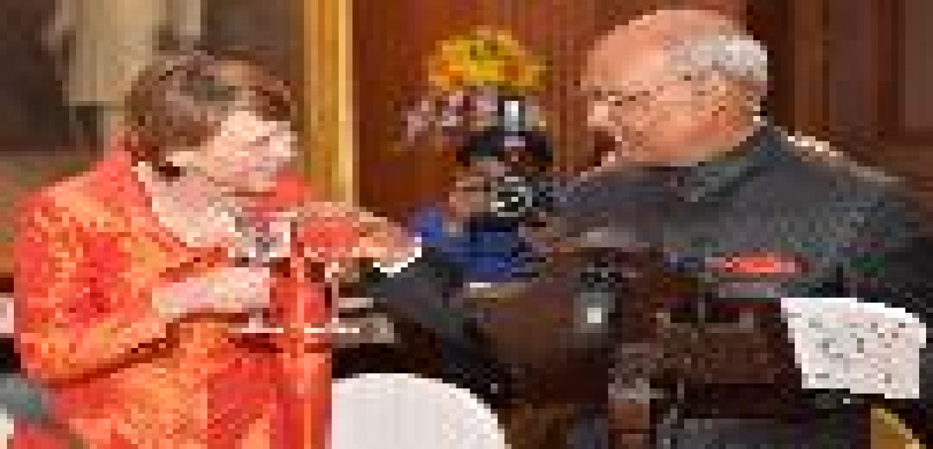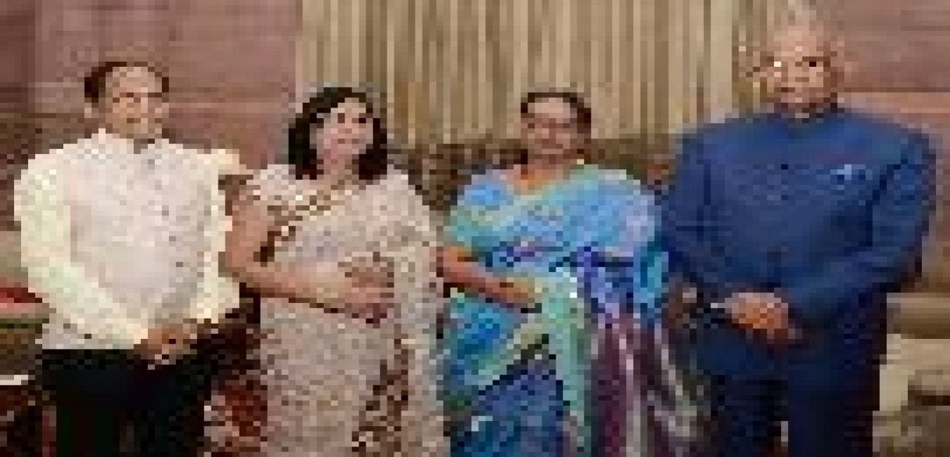 Smt. & Shri S.K. Prasad meeting with the President of India, Shri Ram Nath Kovind and the First Lady of India, Smt. Savita Kovind, at Rashtrapati Bhavan on April 05, 2018.