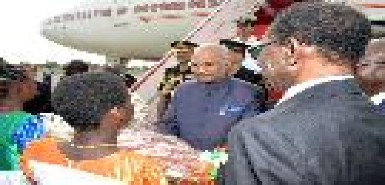 The President of India, Shri Ram Nath Kovind being received by the Prime Minister of Swaziland, H.E. Dr. Barnabas Sibusiso Dlamini and other dignitaries, on his arrival at King Mswati III International Airport, Shikhuphe, in Swaziland on April 09, 2018.