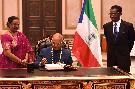 The President of India, Shri Ram Nath Kovind conferred with the Condecoracion (highest honour accorded to a non-citizen by the government of Equatorial Guinea and previously given to select Heads of State from friendly countries) by the President of the Republic of Equatorial Guinea, H.E. Mr. Obiang Nguema Mbasogo, at Presidential Palace, in the Republic of Equatorial Guinea on April 08, 2018.