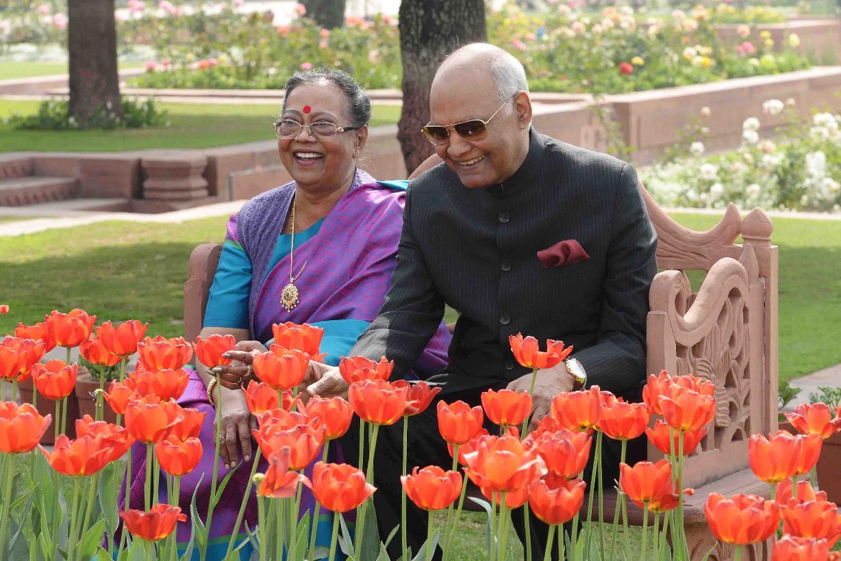 The President of India, Shri Ram Nath Kovind and the First Lady of India, Smt. Savita Kovind walking around at Mughal Garden during the inauguration of Udyanotsav, at Rashtrapati Bhavan on February 05, 2018.