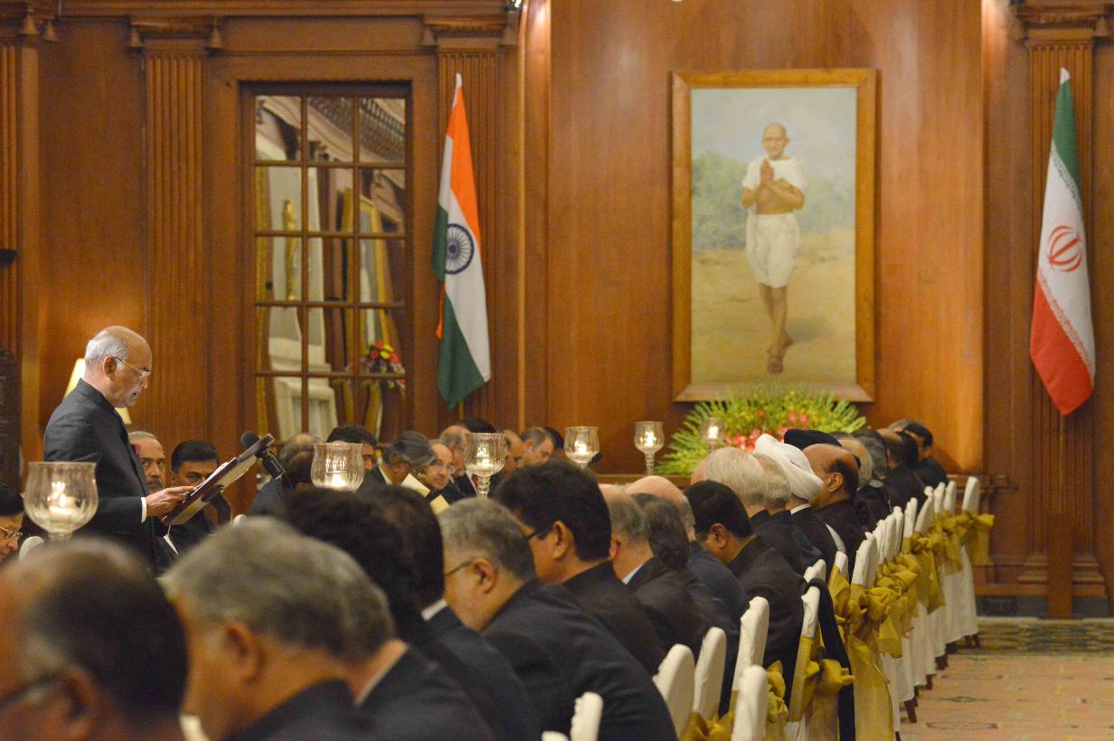 The President of India, Shri Ram Nath Kovind addressing at the Banquet hosted by him, in honour of the President of the Islamic Republic of Iran, H.E. Dr. Hassan Rouhani, at Rashtrapati Bhavan on February 17, 2018.