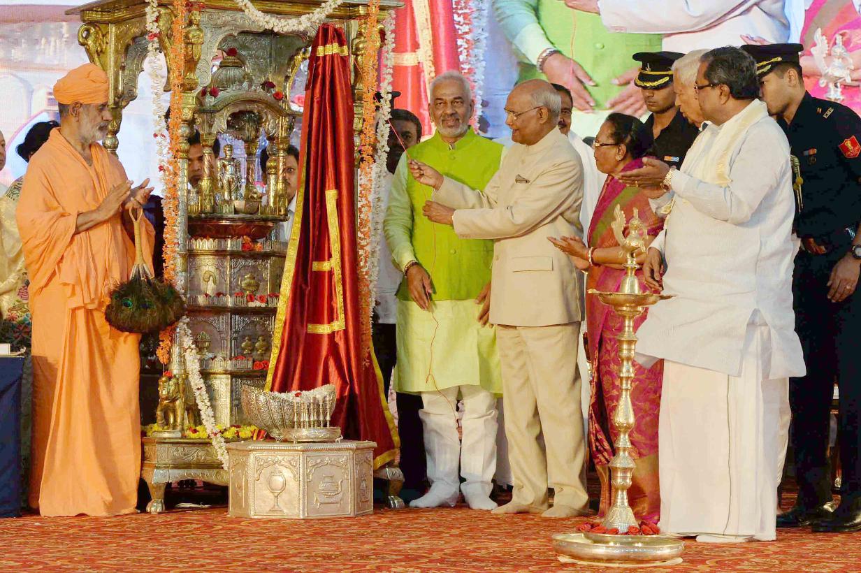 The President of India, Shri Ram Nath Kovind during the inauguration of the Mahamastakabhisheka Mohotsav 2018 of Gommatshwara Bhagwan Shri Bahubali Swami, at Shravanabelagola, in Karnataka on February 07, 2018.