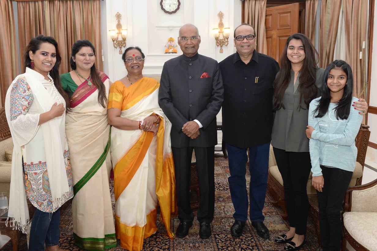 Dr. (Ms.) Ved Gupta along with her brother Shri Vivek Gupta and his family meeting with the President of India, Shri Ram Nath Kovind and First Lady, at Rashtrapati Bhavan on November 18, 2017.